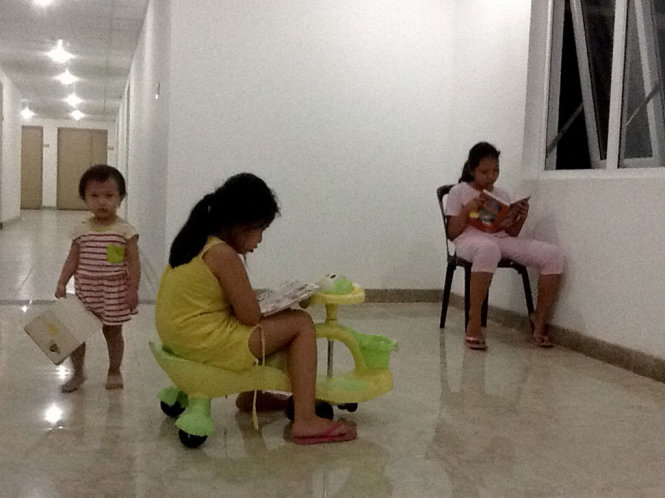 Trẻ em sinh hoạt tại một góc chung cư Bảy Hiền Tower. Ảnh: Tiến Long